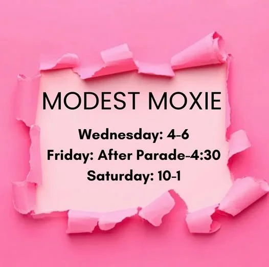 Modest Moxie homecoming week open shop schedule Wednesday, September 24, 2025 4:00 PM Saturday, September 27, 2025 1:00 PM Modest Moxie Wessington Springs, SD, 57382 United States (map) Google Calendar ICS